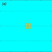 Будем считать, что стая состоит из M одинаковых рыб, расположенных в узлах правильной кубической сетки с шагом р. Схема такой стаи для M = 27 показана на рис. 1. Функция f (x, t) задающая правую часть (1) определяется формулами (4), (5). Далее в численных расчетах жидкость считалась равномерно стратифицированной, частота плавучести N =1; значение констант в (5) принималось равным A i = B i = 1, i = 1,...,M .