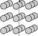 Рис. 3. Схема движения стаи из M = 27 одинаковых рыб. Движение происходит в горизонтальной плоскости z = 0. Сначала стая движется вдоль оси Ox. В момент, когда центр стаи оказывается в начале координат, направление скорости изменяется на 90 градусов, далее стая движется вдоль оси Oy у о