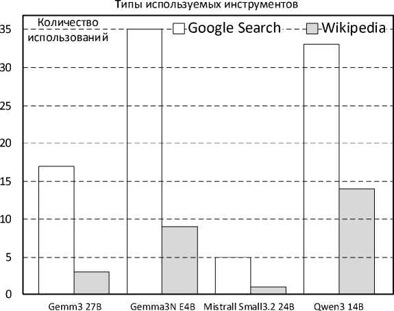 Особое внимание заслуживает проблема интеграции инструментов. Несмотря на то, что использование внешних ресурсов повышает качество решений, эффективность этого процесса во многом определяется корректностью оркестра-ции. Некорректная интерпретация результатов поиска или анализа документов может снижать достоверность вывода. Решение видится в явной спецификации инструментов внутри подсказок, создании специализированных парсеров и включении модулей автоматической верификации.