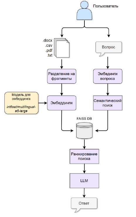 Рисунок 2. Схема взаимодействия пользователя с инструментальным функционалом интеллектуального агента для формирования ответов на основе загруженных документов