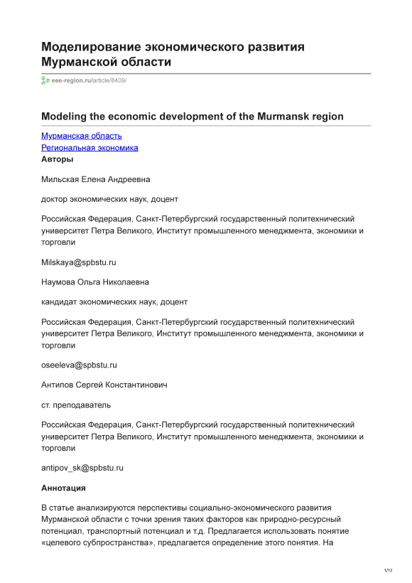В статье анализируются перспективы социально-экономического развития Мурманской области с точки зрения таких факторов как природно-ресурсный потенциал, транспортный потенциал и т.д. Предлагается использовать понятие «целевого субпространства», предлагается определение этого понятия. На основании исследования данного региона (на основе выделения целевых субпространств) предлагается ADL-модель, описывающая влияние выделенного субпространства на социально-экономическое развитие региона. В статье приведены основные результаты разработанной статистической модели и предложены рекомендации по формированию стратегии развития Мурманской области.