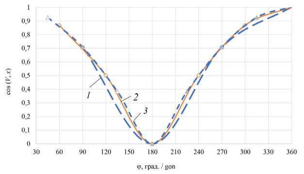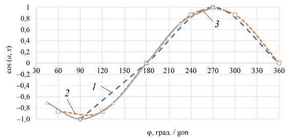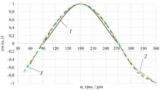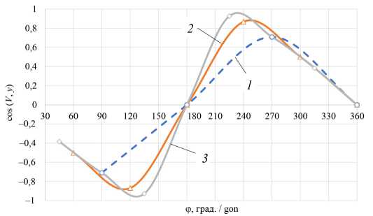 Направляющие косинуса выражения (1) и (2) для определения направления проекций скоростей изменялись по косинусоидальному закону (рис. 5, 6).