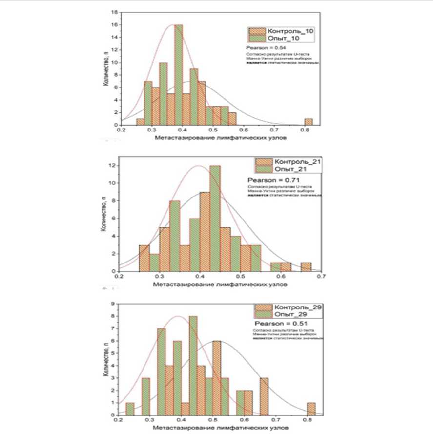 1. Ежедневное воздействие слабым импульсным широкополосным электромагнитным излучением (ЭМИ) с помощью аппарата «ТОР» в течение 60 минут, начиная с 9-го дня после прививки меланомы B16, приводит к статистически значимому уменьшению размеров метастазов в регионарных лимфатических узлах у мышей линии C57BL/6 по сравнению с контрольной группой по U-критерию Манна-Уитни и t-критерию Стьюдента.
