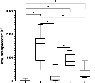 Статистический анализ проводили в программе GraphPad Prism 10.0 (GraphPad Software, США) с использованием непараметрических критериев сравнения. Нормальность распределения данных определяли с помощью критерия Колмогорова-Смирнова. При множественных сравнениях использовали критерий Краскела-Уоллиса и post-hoc тест Двасс-Стил-Кричлоу-Флигнера. Данные приведены в виде медианы и верхнего/нижнего квартилей (Ме (LQ 25%; UQ 75%)). Различия считали значимыми при p<0.05.