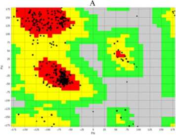 Проверка качества структуры. Уточненные структуры были проверены на стереохимическое качество с помощью сервера проверки и анализа структуры (Structure Validation and Analysis Server, SAVES), предоставляющего несколько соответствующих программ анализа. ERRAT проверяет статистику нековалентных связей между различными типами атомов. PROCHECK помогает анализировать стереохимическое качество структуры белка. VERIFY-3D оценивает совместимость атомной модели с ее собственной аминокислотной последовательностью. WHAT_IF участвует в интенсивной проверке стереохимических параметров остатка модели. Все эти программы в составе SAVES помогают в полной и надлежащей проверке стереохимии построенных моделей белков (25).