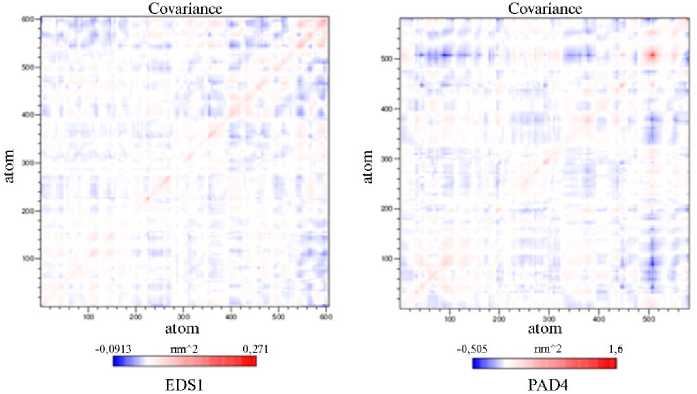 Анализ главных компонент. Для понимания общего характера изменения координат атомов в EDS1 и PAD4 во время МДМ был проведен анализ основных мод движения, или анализ главных компонент