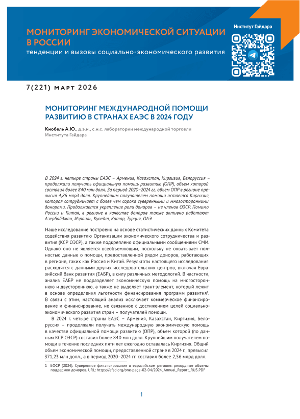 Текст научной статьи Мониторинг международной помощи развитию в странах ЕАЭС в 2024 году