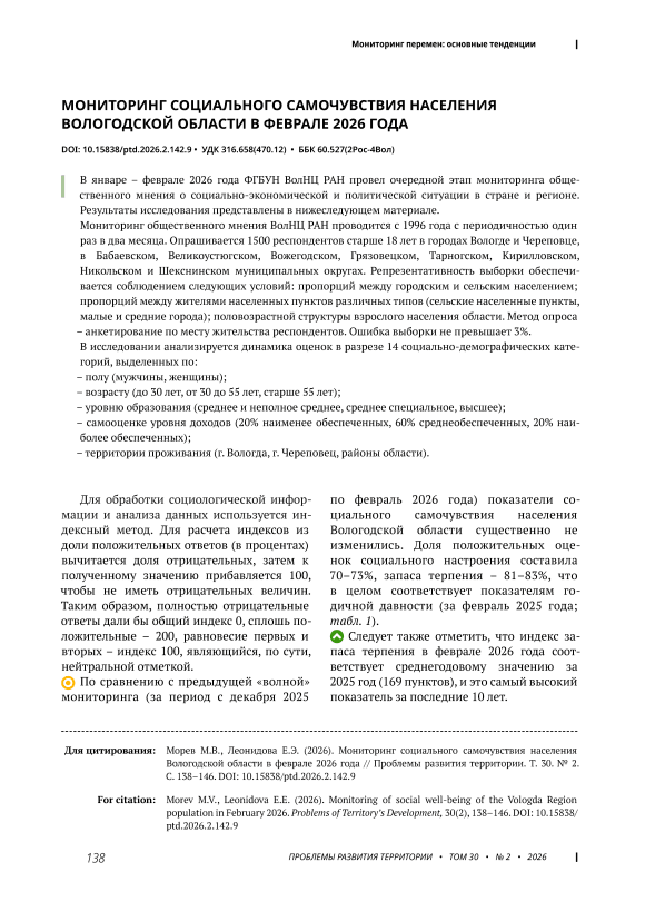 Мониторинг социального самочувствия населения Вологодской области в феврале 2026 года