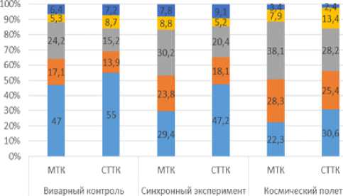 ■ Виварный контроль ■ Синхронный эксперимент ■ Космический полет