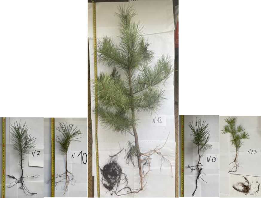 Рис. 3. Фотографии 8-летних сеянцев сосны обыкновенной ( Pinus sylvestris L.) естественного возобновления на отвалах Кумертауского буроугольного разреза