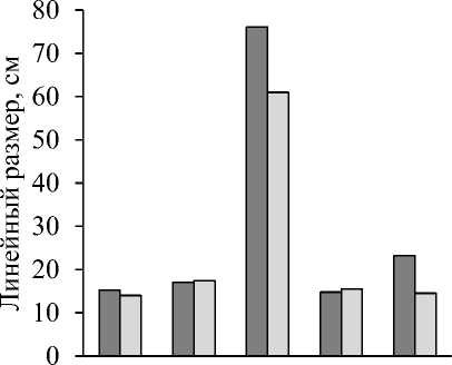 Установлено, что минимальная длина подземной части сосны составляет 5,4 см, максимальная – 39,5 см. Минимальная ширина подземной части сосны составляет 1,0 см, максимальная – 49,5 см.