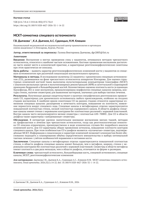 IDR: 142247045 | УДК: [616.718.4/.5-018.46-002]-073.756.8 | DOI: 10.18019/1028-4427-2026-32-1-14-22