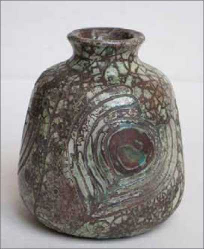 Илл. 3. А.В. Филиппов. Вазочка с орнаментом в виде павлиньих перьев. Майолика, кракле, цветные эмали. Россия, Москва. Императорское Строгановское училище. 1903 г. Источник фото: сайт Академии Строганова .