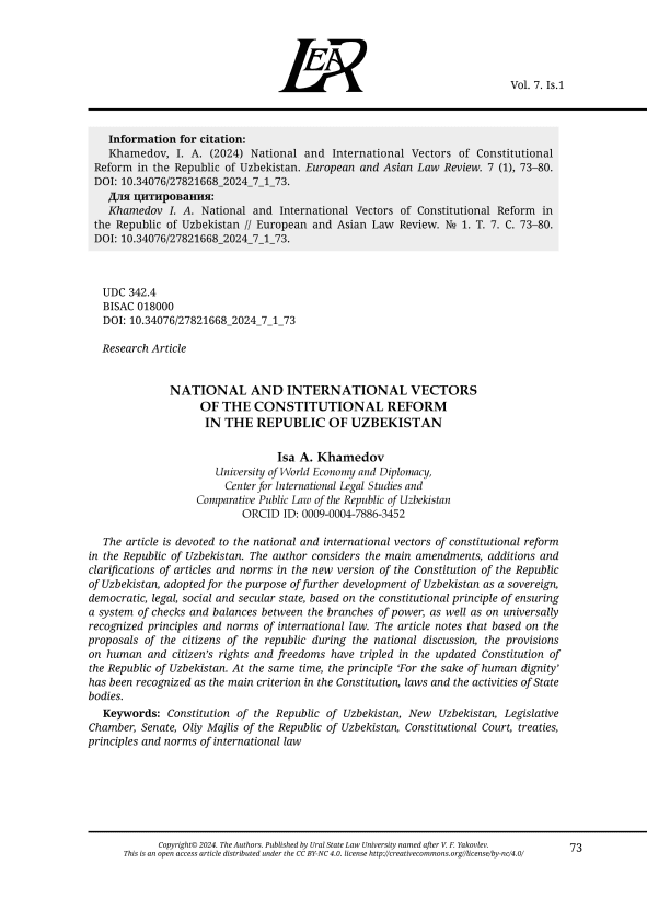 НАЦИОНАЛЬНЫЙ И МЕЖДУНАРОДНЫЙ ВЕКТОРЫ КОНСТИТУЦИОННОЙ РЕФОРМЫ В РЕСПУБЛИКЕ УЗБЕКИСТАН