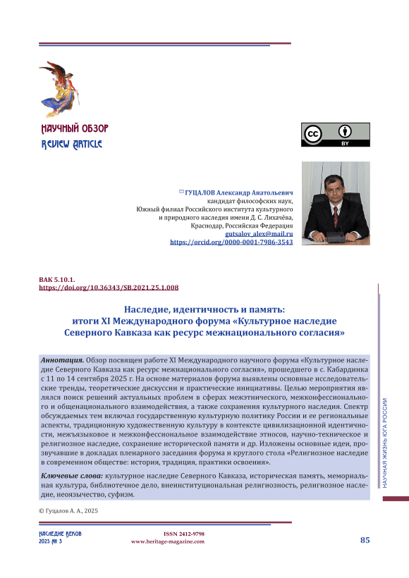 Текст научной статьи Наследие, идентичность и память: итоги XI Международного форума «Культурное наследие Северного Кавказа как ресурс межнационального согласия»