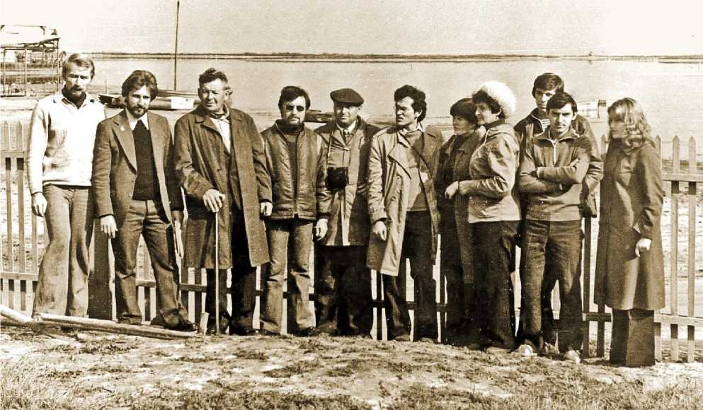 Участники II совещания Азово-Черноморской орнитологической рабочей группы. Слевав направо: И.И.Черничко, В.Д.Сиохин, М.А.Воинственский, Г.А.Молодан, А.И.Корзюков, ?, Н.А.Тарина, Т.Б.Ардамацкая, А.А.Ищенко, С.Ю.Костин, В.В.Золотоверх.