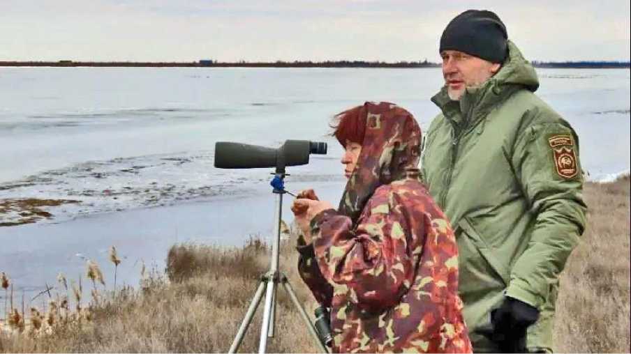 Н.А.Тарина и государственный инспектор охраны окружающей среды В.Белогуров. Лебяжьи острова. 2020-е годы