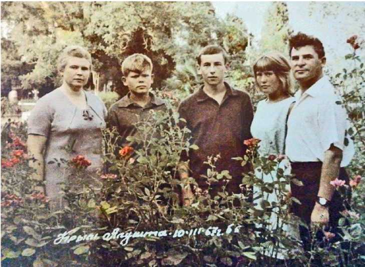 Семья Тариных (слева направо): Валентина Ивановна, дети Костя, Владимир, Наташа, Александр Николаевич. Алушта. 10 марта 1967
