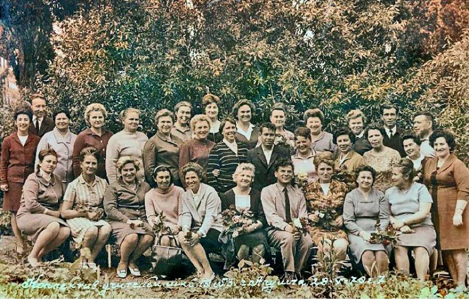 В нижнем ряду в центре – В.И.Тарина и А.Н.Тарин. 1970 год