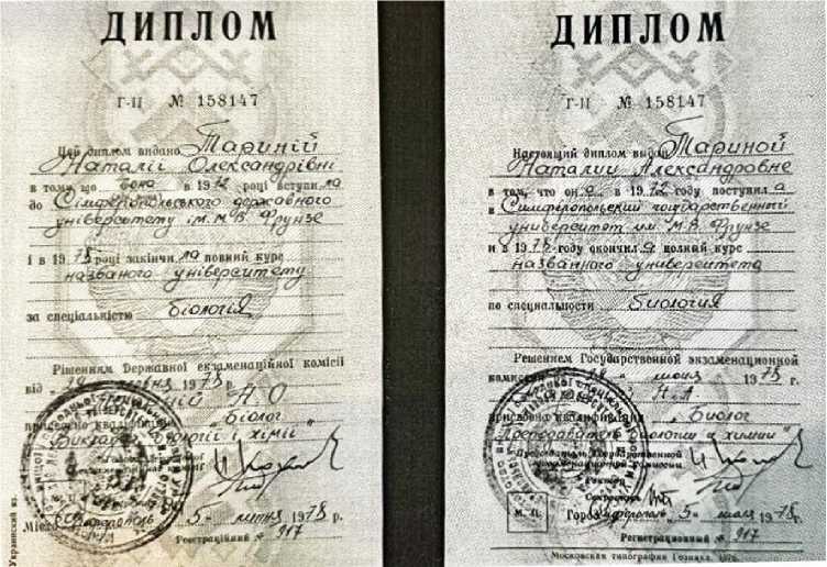 Н.А.Тарина и А.В.Иванова поступили на заочное отделение биологического факультета Симферопольского государственного университета имени М.В.Фрунзе, который успешно окончили с присвоением квалификации «биолог, преподаватель биологии и химии» по специальности «биология».
