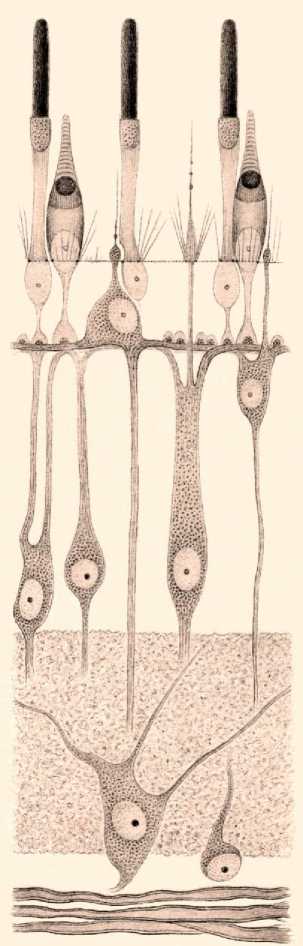 Рисунок 3. Схема строения сетчатки (по Догелю А.С ., 1883 [1]). Из архивов кафедры гистологии, цитологии и эмбриологии КГМУ