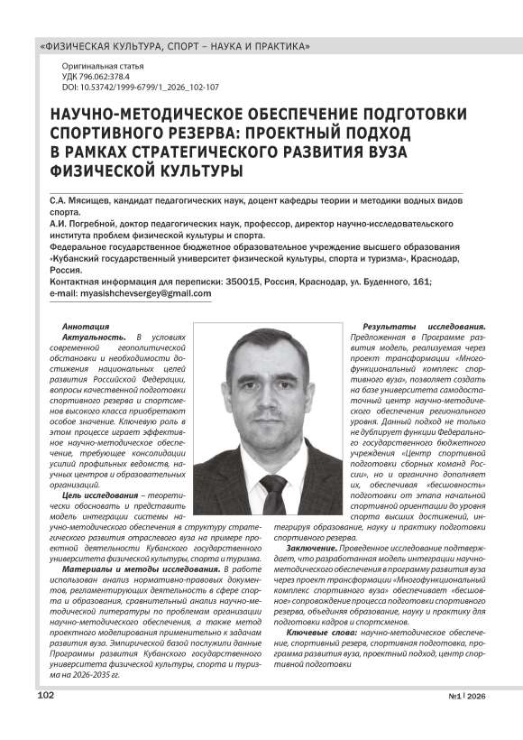 НАУЧНО-МЕТОДИЧЕСКОЕ ОБЕСПЕЧЕНИЕ ПОДГОТОВКИ СПОРТИВНОГО РЕЗЕРВА: ПРОЕКТНЫЙ ПОДХОД В РАМКАХ СТРАТЕГИЧЕСКОГО РАЗВИТИЯ ВУЗА ФИЗИЧЕСКОЙ КУЛЬТУРЫ