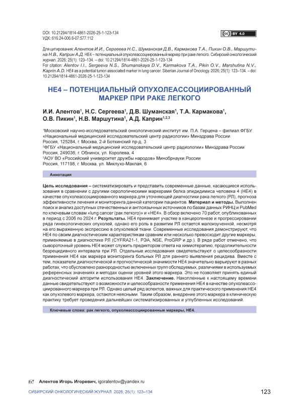 IDR: 140314353 | УДК: 616.24-006.6-07:577.112 | DOI: 10.21294/1814-4861-2026-25-1-123-134