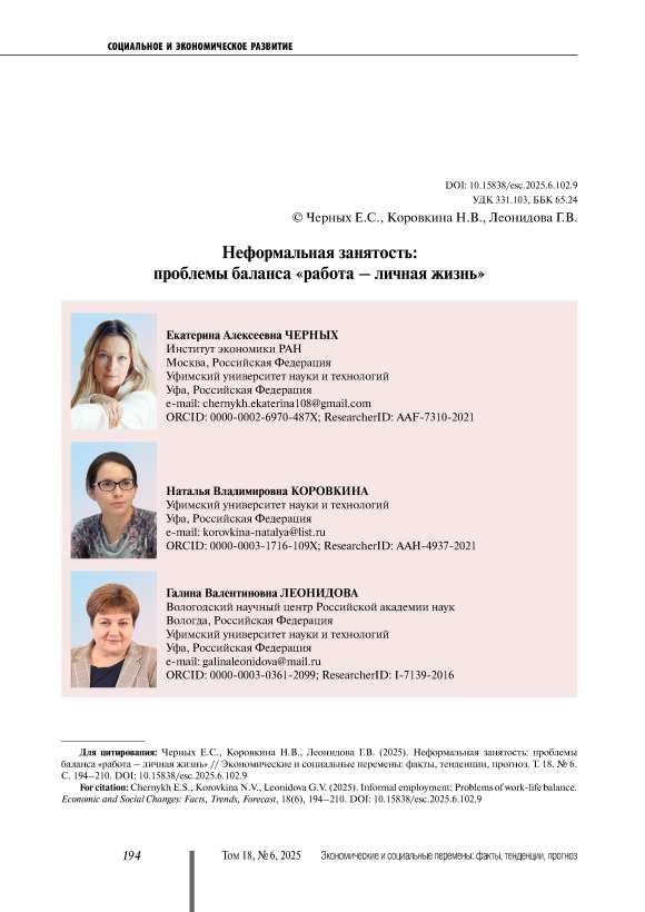 Текст научной статьи Неформальная занятость: проблемы баланса «работа – личная жизнь»
