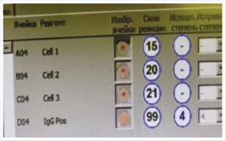 Рис. 4. Результат скрининга нерегулярных анти-эритроцитарных антител.