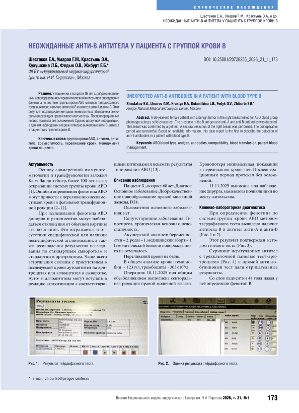 Текст научной статьи Неожиданные анти-в антитела у пациента с группой крови B
