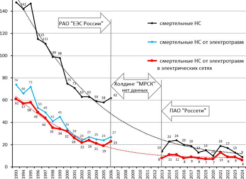 – ежегодно количество электротравм со смертельным исходом снижалось, но остается на высоком уровне. Риск смертельной электротравмы в ПАО «Россети» за последние 10 лет составляет в среднем 39,3·10 –6 год –1 , что практически в 40 раз выше, чем принятый приемлемый;
