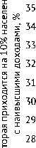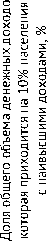 Доля общего объема денежных доходов, которая приходится на 10% населения с наименьшими доходами, %
