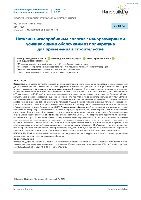 Журнал: Нанотехнологии в строительстве: научный интернет-журнал @nanobuild