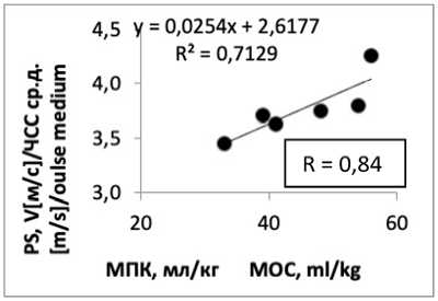 м Ps, V [м/с]/ЧСС ср.д Ps, V [m/s]/pulse medium —О—V, м/с V, m/s