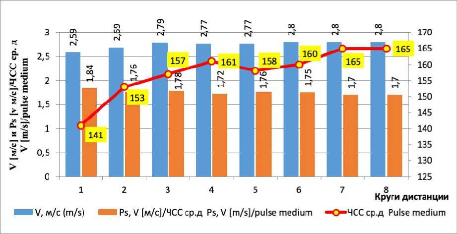 Физиологический смысл этого показателя заключается в том, что при улучшении функционального состояния происходит увеличение скорости передвижения и снижение среднедистанционной ЧСС.