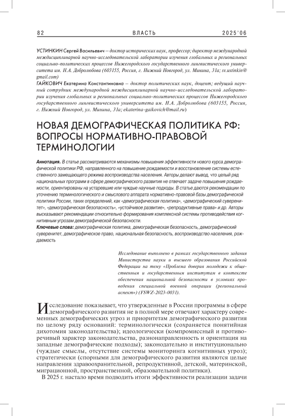 Новая демографическая политика РФ: вопросы нормативно-правовой терминологии