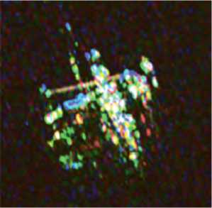 Сформулированные выводы подтверждают возможность применения параметров мульти-фрактальных спектров, вычисленных с помощью метода формирования НММФС, для интерпретации поляриметрических радиолокационных данных в интересах как классификации типов подстилающей поверхности, так и обнаружения и распознавания объектов. В работе также получены с помощью предложенного метода НММФС фрактальные изображения как результат текстурно-фрактальной обработки поляриметрических РЛИ (рис. 8), пример которых для q = 1 приведен на рис. 10.