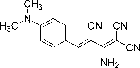 В химический стакан объемом 25 мл помещают 0,50 г (2,92 ммоль) калиевой соли димера малононитрила 3 , 0,44 г (2,92 ммоль) 4-(диметиламино)бензальдегида, 2 мл ледяной уксусной кислоты и 3 мл воды. Смесь нагревают до 50 °С, что обеспечивает полную гомогенизацию реакционной массы. Образовавшийся красно-оранжевый раствор перемешивают при указанной температуре до завершения реакции и выпадения осадка продукта (контроль по результатам ТСХ, элюент – ацетон : гексан = 2 : 1). Смесь охлаждают до комнатной температуры, добавляют 2 мл ледяной воды. Осадок отфильтровывают, промывают водой (3 мл), охлажденным 40%-ным этанолом (3 мл) и затем петролейным эфиром (3 мл), высушивают при 60 °С. Получают 2-амино-4-[4-(диметиламино)фенил]бута-1,3-диен-1,1,3-трикарбонитрил в виде ярко-оранжевого порошка в аналитически чистом виде (ТСХ), выход 88 %. ЯМР 1H (400 МГц, ДМСО-d 6 ), δ, м.д.: 3,08 (с, 6H, N(CH 3 ) 2 ), 6,95 (д, 2H, Ar, 3J = 8,6 Гц), 7,86 (д, 2H, Ar, 3J = 8,6 Гц), 7,90 (с, 1H, Ar-CH=), 8,80 (уш. с, 1H, NH 2 ), 8,90 (уш. с, 1H, NH 2 ). Найдено, %: C 68,37; H 5,06; N 26,55. C 15 H 13 N 5 (М 263,30). Вычислено, %: C 68,42; H 4,98; N 26,60.