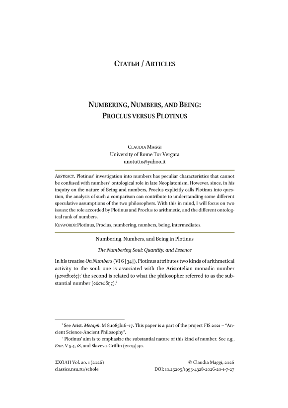 Текст научной статьи Numbering, Numbers, and Being: Proclus versus Plotinus