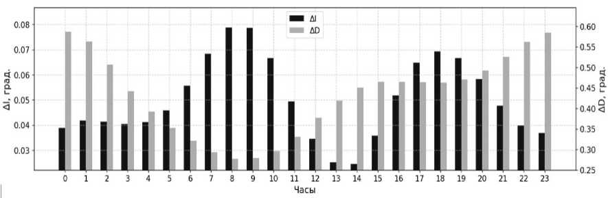Рис. 1. Среднесуточные изменения значений ΔI и ΔD