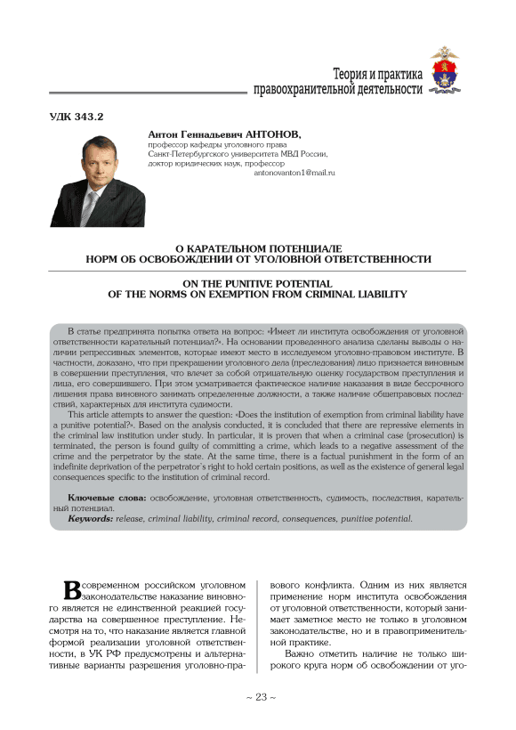 Текст научной статьи О карательном потенциале норм об освобождении от уголовной ответственности