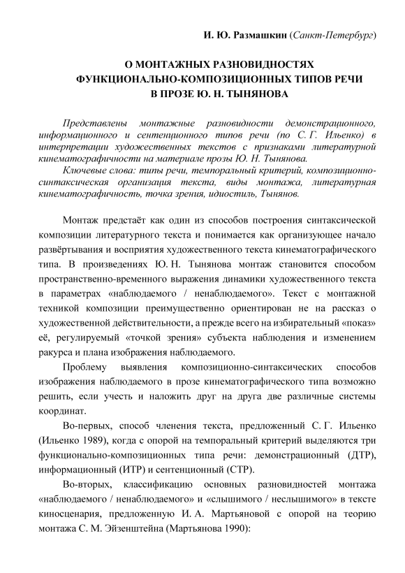 О монтажных разновидностях функционально-композиционных типов речи в прозе Ю. Н. Тынянова. About Montage Varieties of Functional-compositional Types of Speech in the Prose by YU. N. Tynyanov
