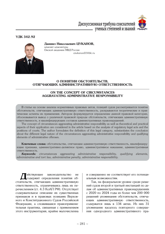 Текст научной статьи О понятии обстоятельств, отягчающих административную ответственность