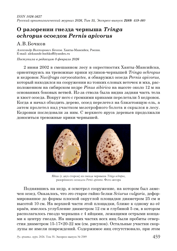 О разорении гнезда черныша Tringa ochropus осоедом Pernis apivorus