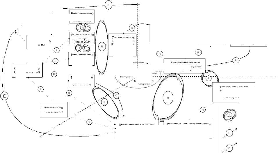 Таким образом, взаимная сцепка трех измерений генерирует эффект обратной связи: действия и события в рамках одного из них отзываются на других уровнях, относящихся к альтернативным измерениям, формируя циклы, которые могут быть либо взаимоусиливающими (положительная обратная связь), либо сдерживающими (отрицательная обратная связь). Благодаря методологии системного картирования все эти взаимодействия могут быть визуализированы для более наглядного понимания системной связанности разнонаправленных процессов (рисунок 1).