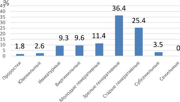Усредненный онтогенетический спектр ценопопуляций ломиозии (скабиозы) исетской в Самарском Предволжье приведен на рисунке.