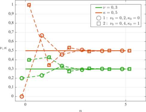 Начальное приближение для v 0 рекомендуется брать из известного для материала диапазона значений либо из стержневой модели v 0 = f ,i . Параметр к 0 рекомендуется брать равным нулю или использовать некоторую априорную информацию.