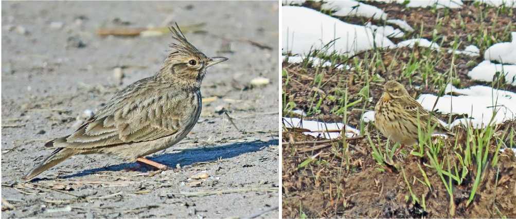 Рис. 8 (слева). Хохлатый жаворонок Galerida cristata . Микрорайон Литвинки. 26 февраля 2025. Фото В.А.Черкасова.