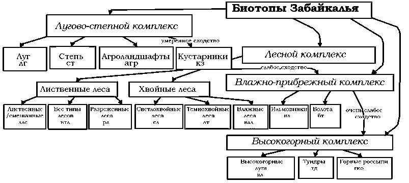 Максимальное видовое богатство сосредоточено в переходных зонах (лесостепь, нижняя тайга), тогда как узкоспециализированные виды преобладают в экстремальных условиях (степи, высокогорья).