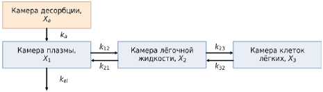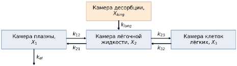 Рисунок 3. Структура многокамерной ФК-модели, описывающая ингаляционное введение препарата